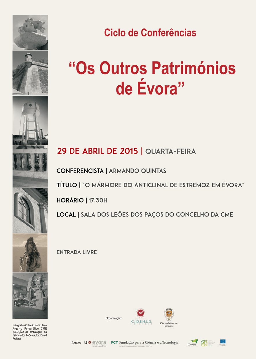 No âmbito do Ciclo de Conferências "Os Outros Patrimónios de Évora" irá ter lugar a conferência O Mármore do Anticlinal de Estremoz em Évora, proferida por Armando Quintas